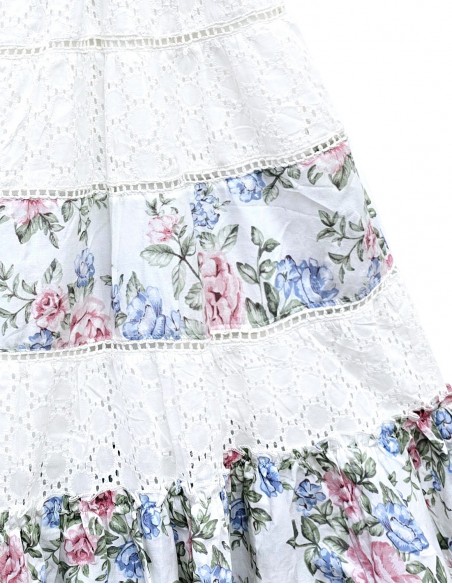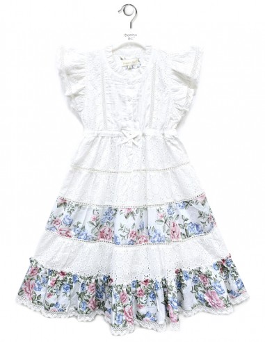 Beautifully designed dress with floral embroidery to the bodice, this dress features elasticated cap sleeves, a crew neckline and frill detail to the tiered design. A comfortable yet stylish option for warmer days.