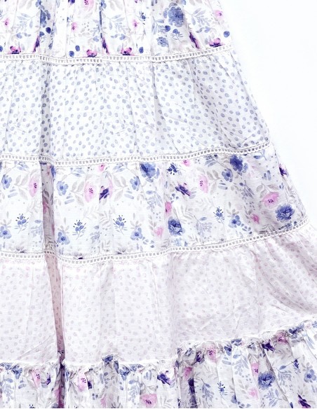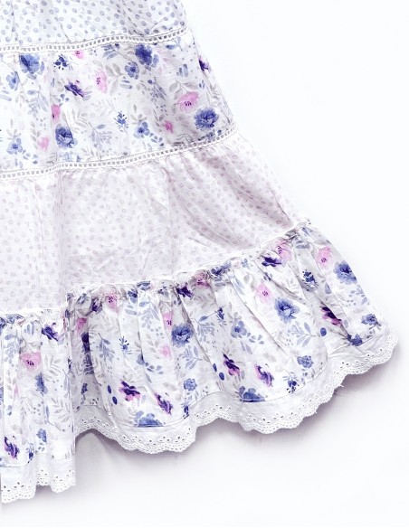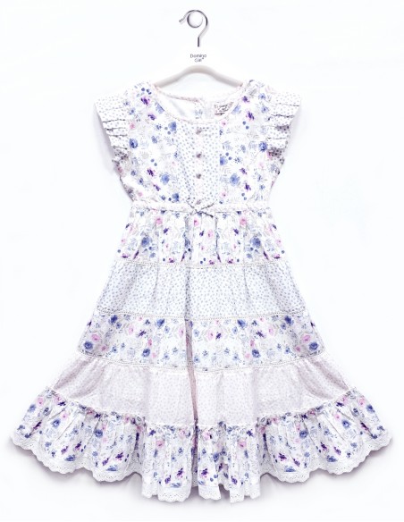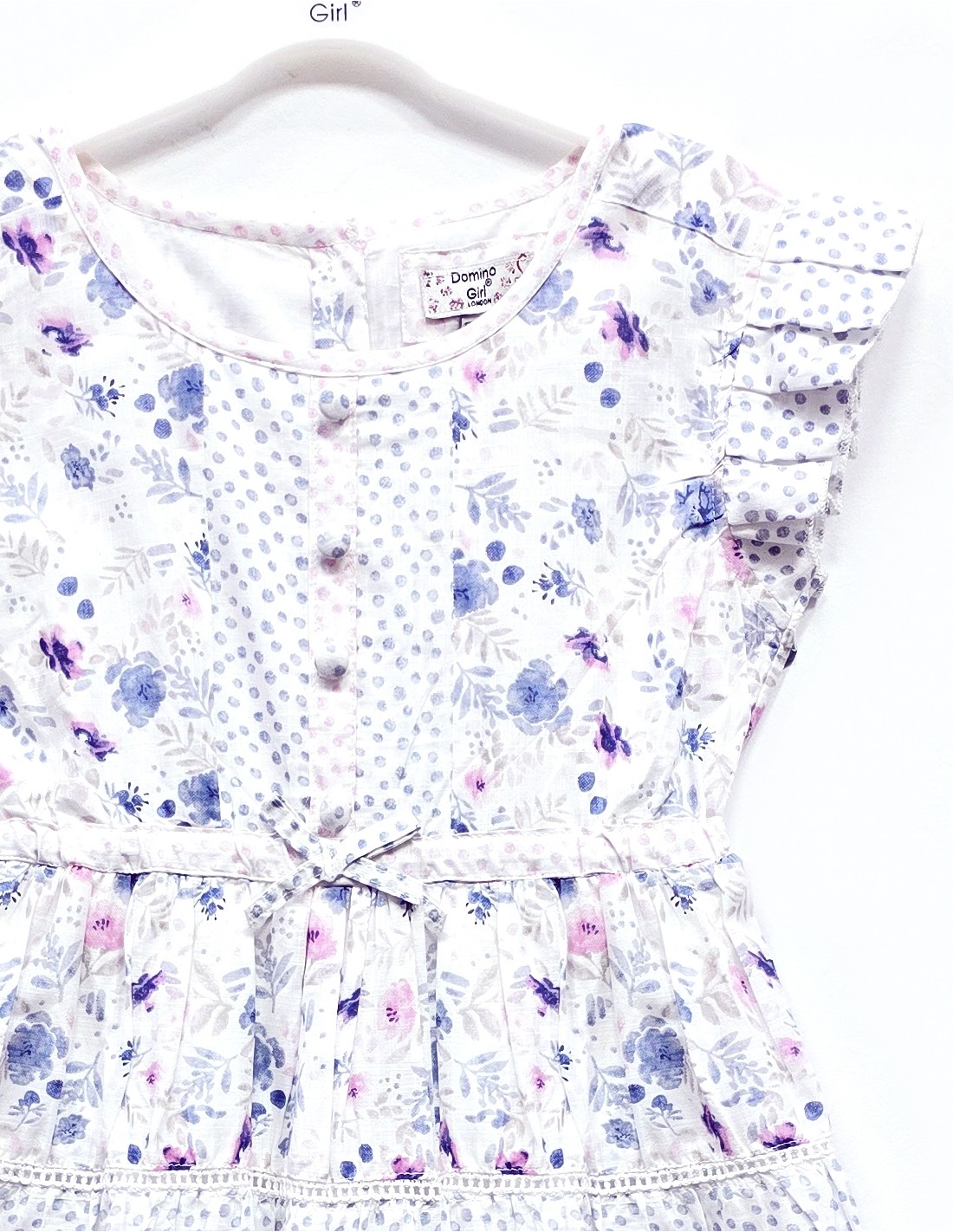 A special floral printed dress for summer in a soft linen fabric for all-day comfort. This pretty dress is designed with a twirl-ready skirt with a lace detailing to the sleeves and hem.